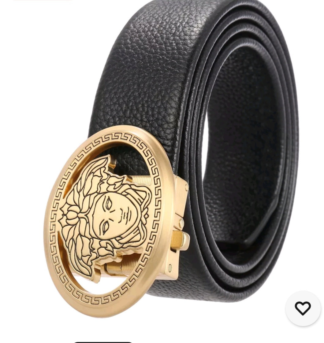 Genuine Leather Belts For Men Automatic Buckle Adjustable by trim to fit...........The men's leather Medusa belt features a luxurious design crafted from high-quality leather, showcasing a bold and iconic Medusa head emblem, symbolizing opulence and sophistication. This statement piece is characterized by its sleek finish and meticulous stitching, ensuring durability and style. The belt often comes in various colors, typically black or brown, and is complemented by a polished metal buckle, enhancing its aesthetic appeal. Ideal for both casual and formal attire, it adds a touch of elegance and a statement of personal style.