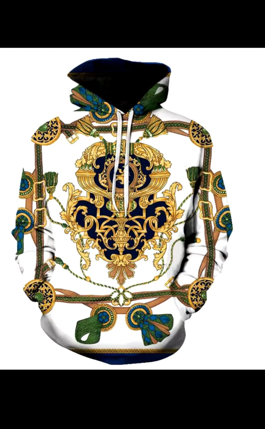 The gold green-white gold leaf hoodie for men features a stylish and contemporary design, showcasing a unique blend of colors that include vibrant gold, rich green, and pristine white. Crafted from a soft and breathable fabric, this hoodie offers comfort and warmth, making it perfect for casual outings or lounging. The standout gold leaf pattern adds a touch of luxury and sophistication, while the relaxed fit ensures a comfortable wear. Finished with a cozy hood and adjustable drawstrings, this hoodie is both fashionable and functional, making it a versatile addition to any wardrobe."